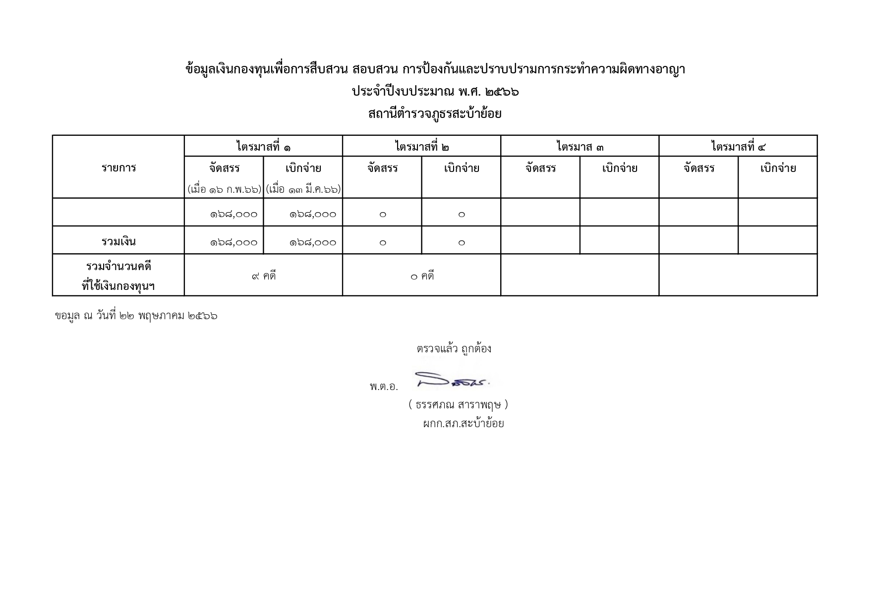 ข้อมูลเงินกองทุนเพื่อการสืบสวนและสอบสวนคดีอาญา