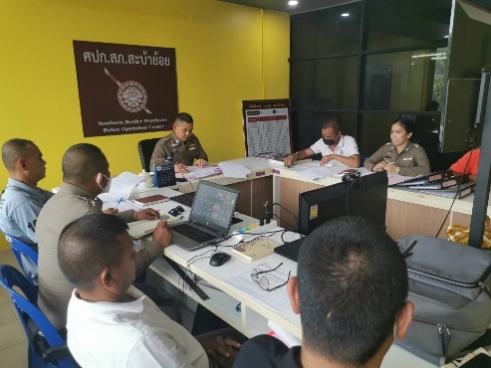 โดยมี พ.ต.อ.ธรรศภณ  สาราพฤษ  ผู้กำกับการสถานีตำรวจภูธรสะบ้าย้อย เป็นประธานการประชุม