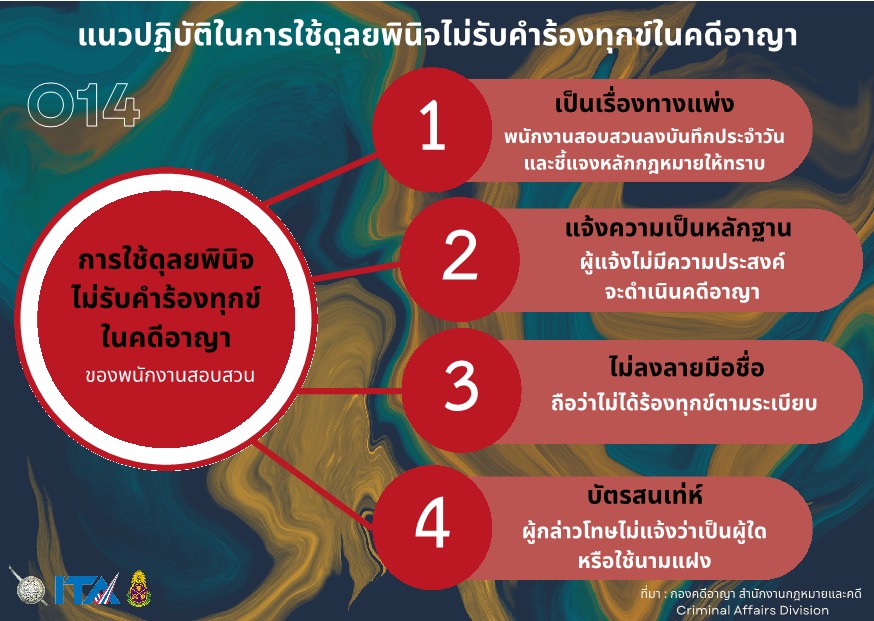 แนวปฏิบัติในการใช้ดุลยพินิจไม่รับคำร้องทุกข์ ในคดีอาญา